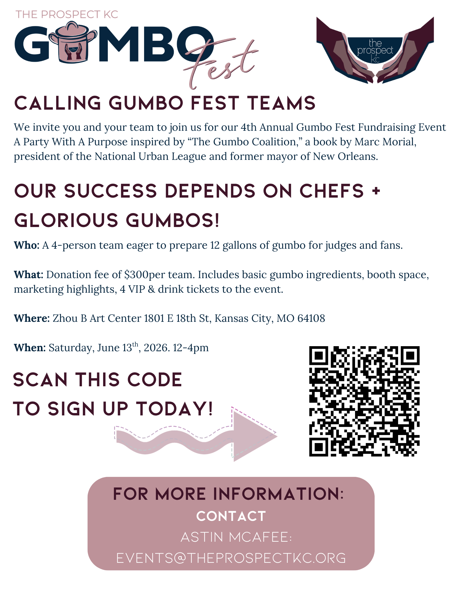 Who will be crowned champion???Who has the best gumbo???Is your team ready???Sign Up Today! Ready to buy tickets? - get them here: The Prospect KC